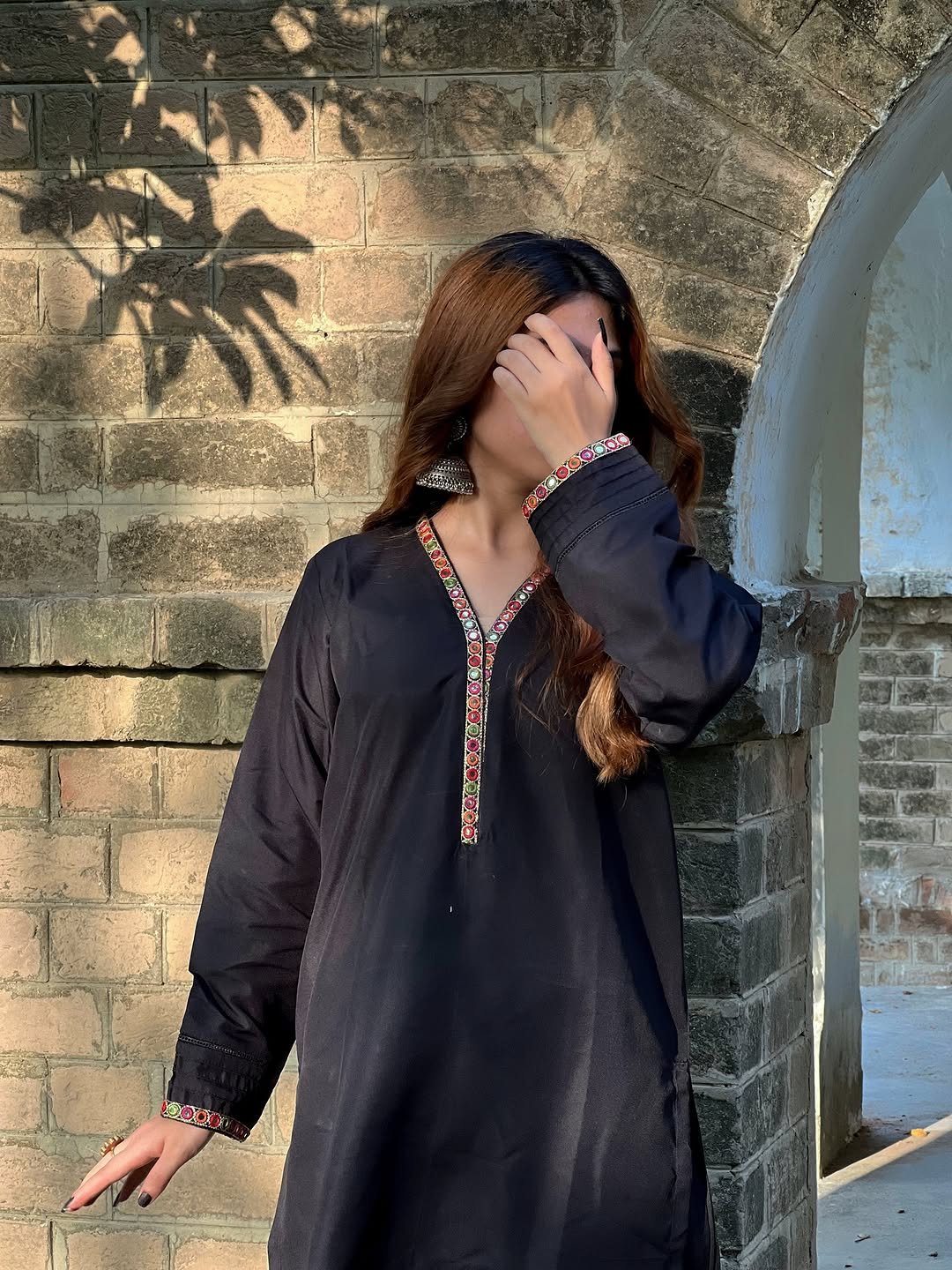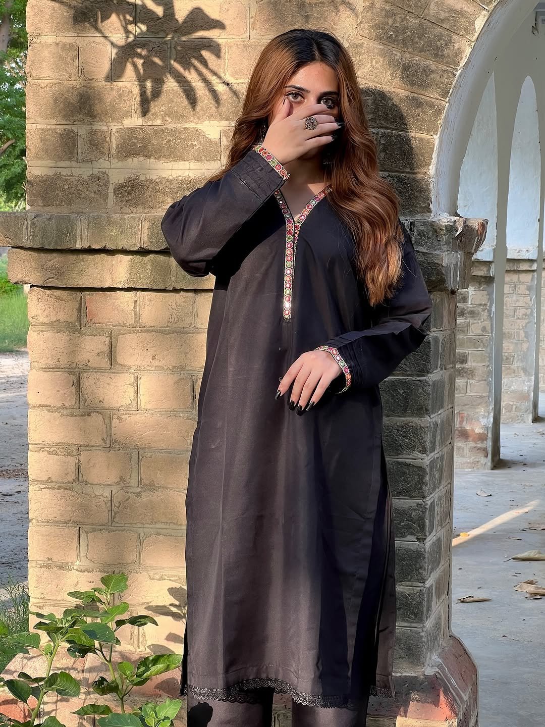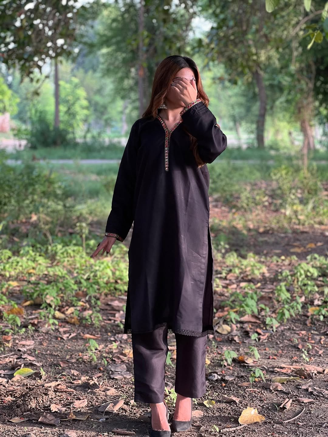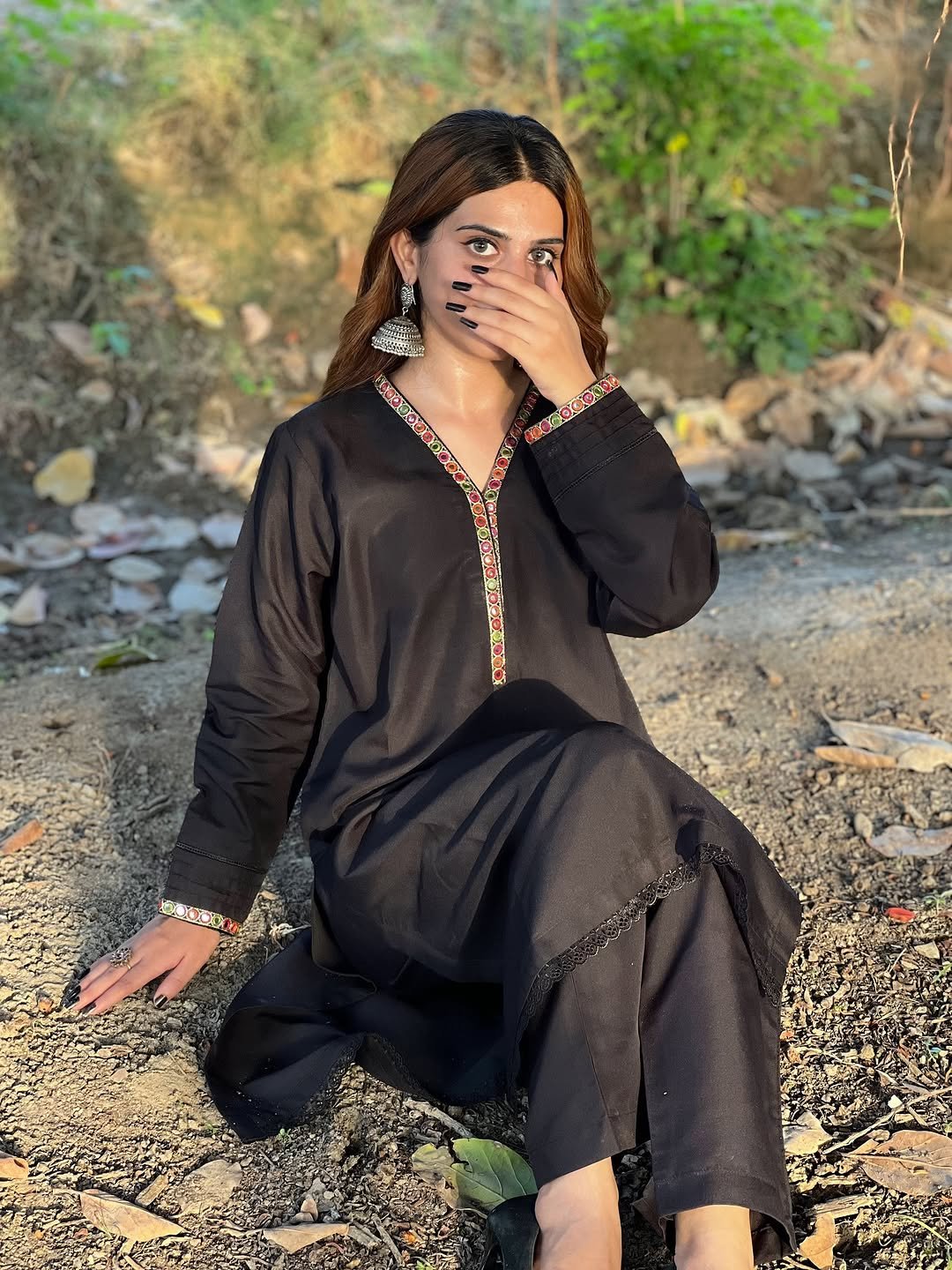 IT’S A 2PC KURTA AND TROUSER WITH LACE WORK ON IT